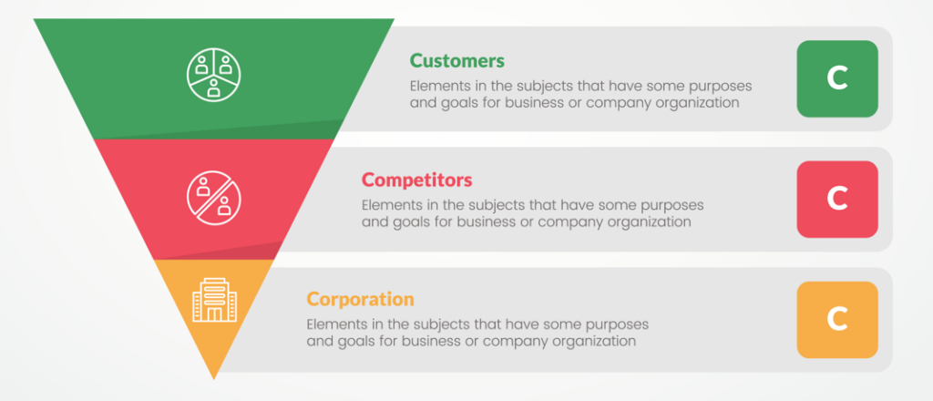 3C分析では、以下の3つの要素を抜け漏れなくリサーチします。